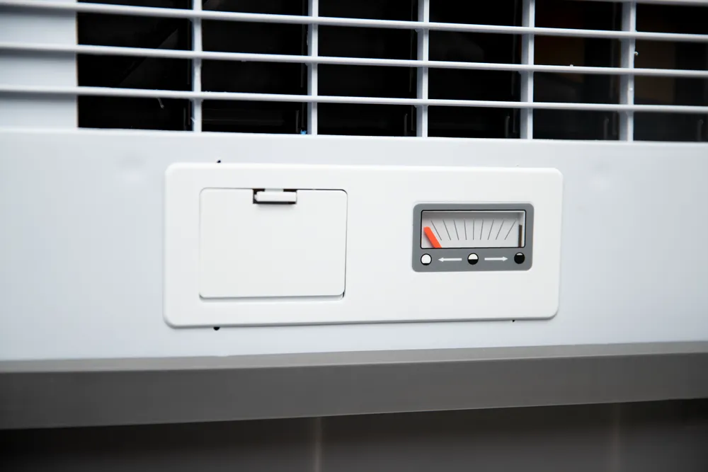 El diseño robusto del modelo F12000P-CM incorpora ruedas con freno para facilitar su movilidad y asegurar estabilidad durante su uso. También incluye una charola multiusos superior, que añade practicidad en entornos de trabajo o descanso. En conjunto, este enfriador representa una solución confiable, eficiente y duradera para quienes buscan un clima confortable en espacios exigentes.